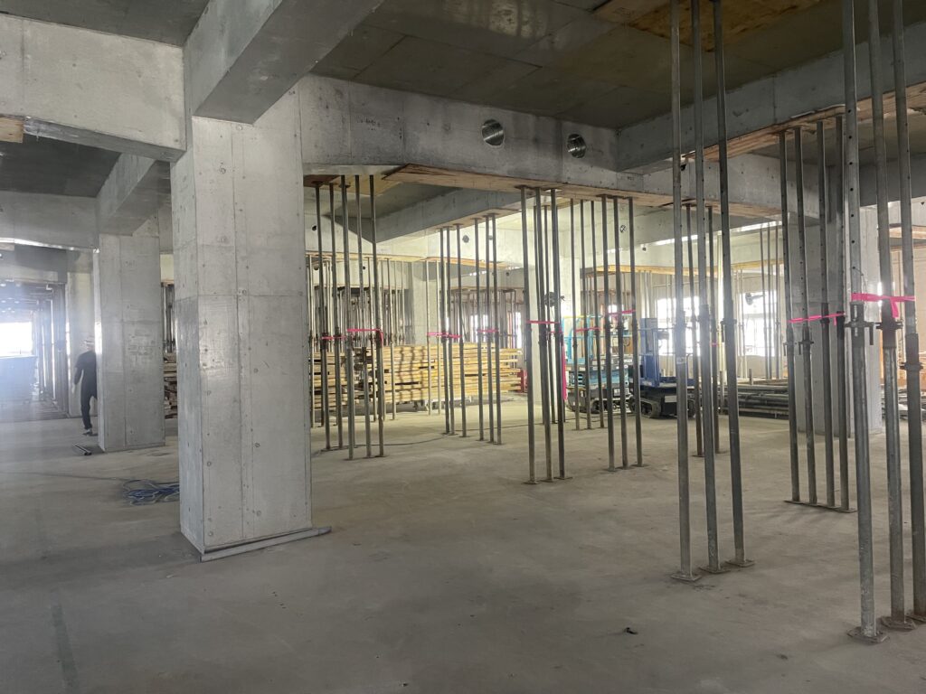 現在、5階部分の躯体工事が終わりに近づいており、全体の大きさがイメージできるところまで来ました。